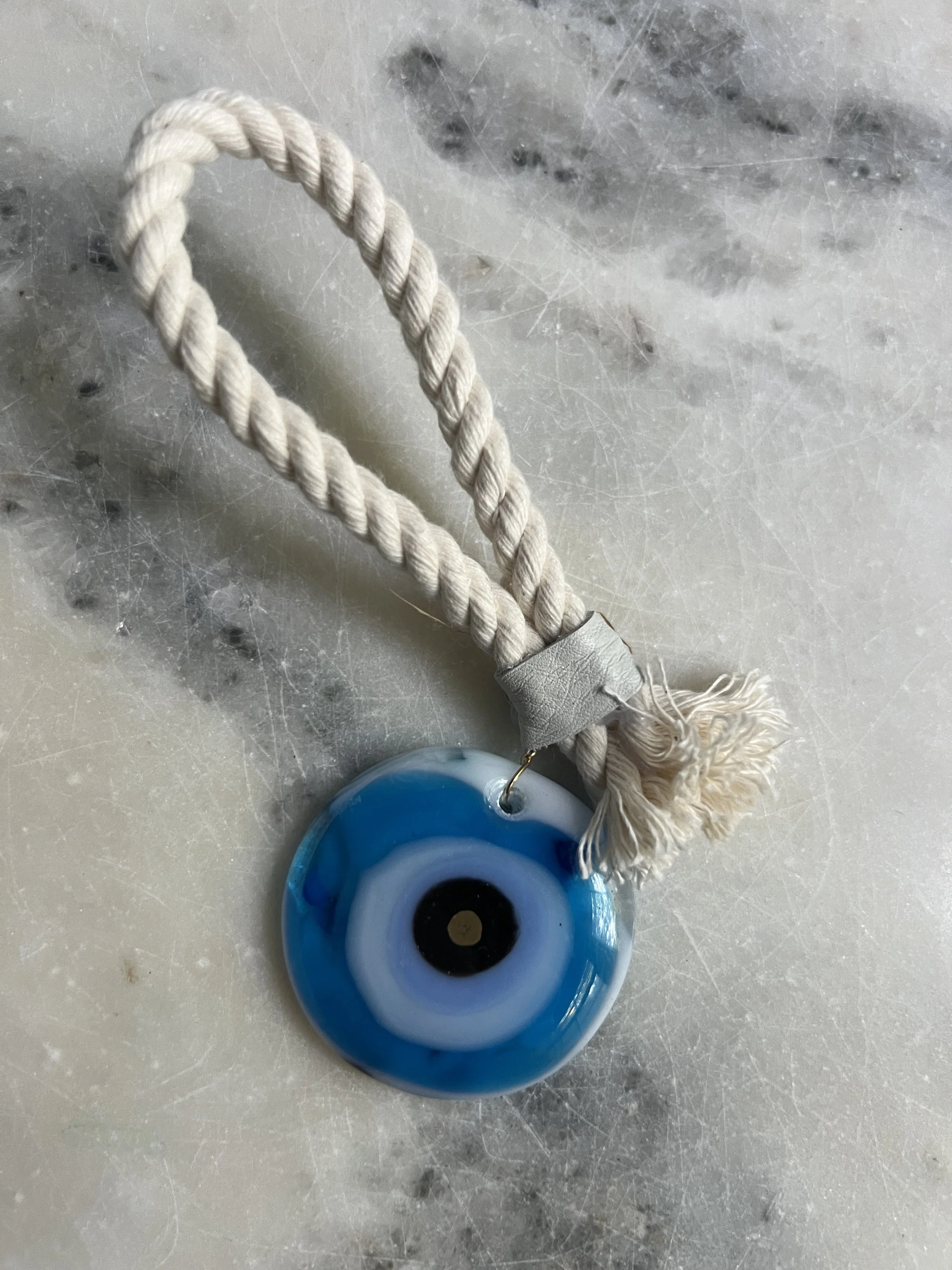 Handmade glass evil eye Mati Greek energetic protection amulet handmade by Depy Zepo in Chicago. One of a kind, unique, catches light beautifully - hang on your walls, in your windows, anywhere you need a boost of good luck and charm. Sky’s the limit babes, this handmade glass object is meant to bring you peace of mind and clarity of conviction. May it bring you and yours good health & wellness and energetic protection!
