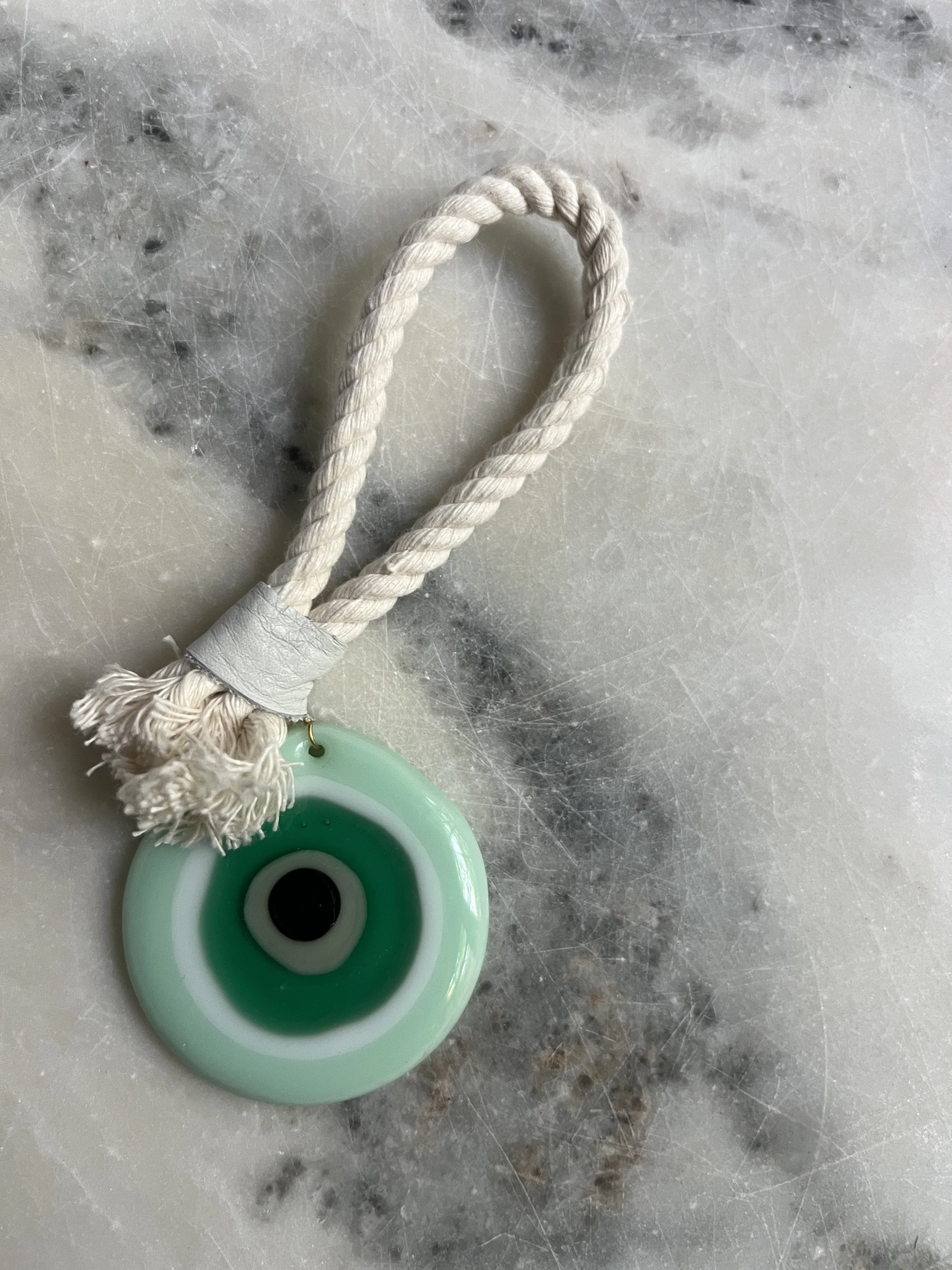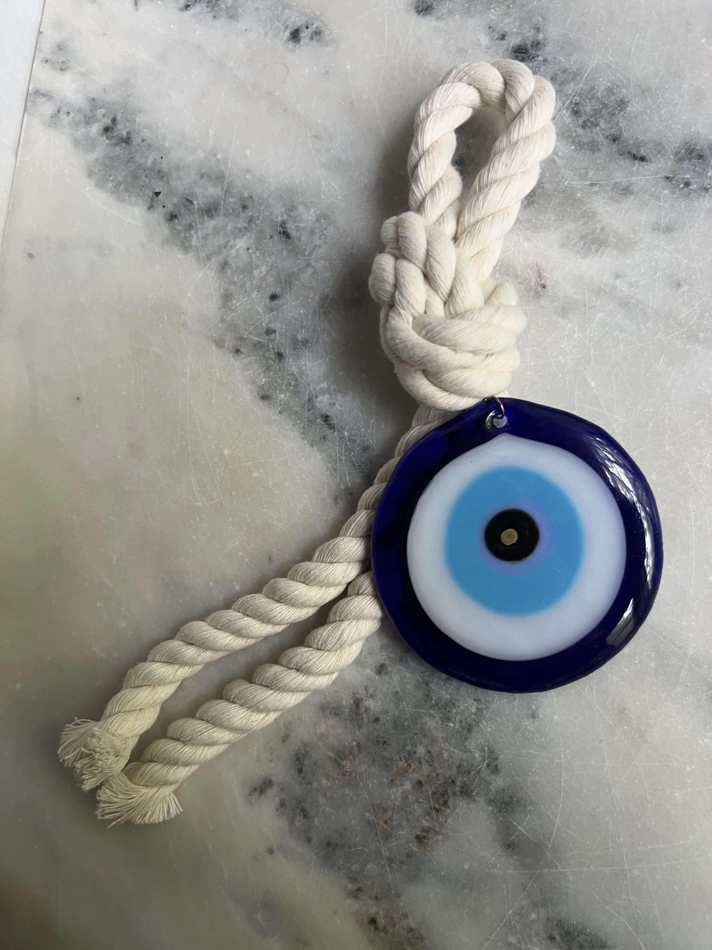 Handmade glass evil eye Mati Greek energetic protection amulet handmade by Depy Zepo in Chicago. One of a kind, unique, catches light beautifully - hang on your walls, in your windows, anywhere you need a boost of good luck and charm. Sky’s the limit babes, this handmade glass object is meant to bring you peace of mind and clarity of conviction. May it bring you and yours good health & wellness and energetic protection!