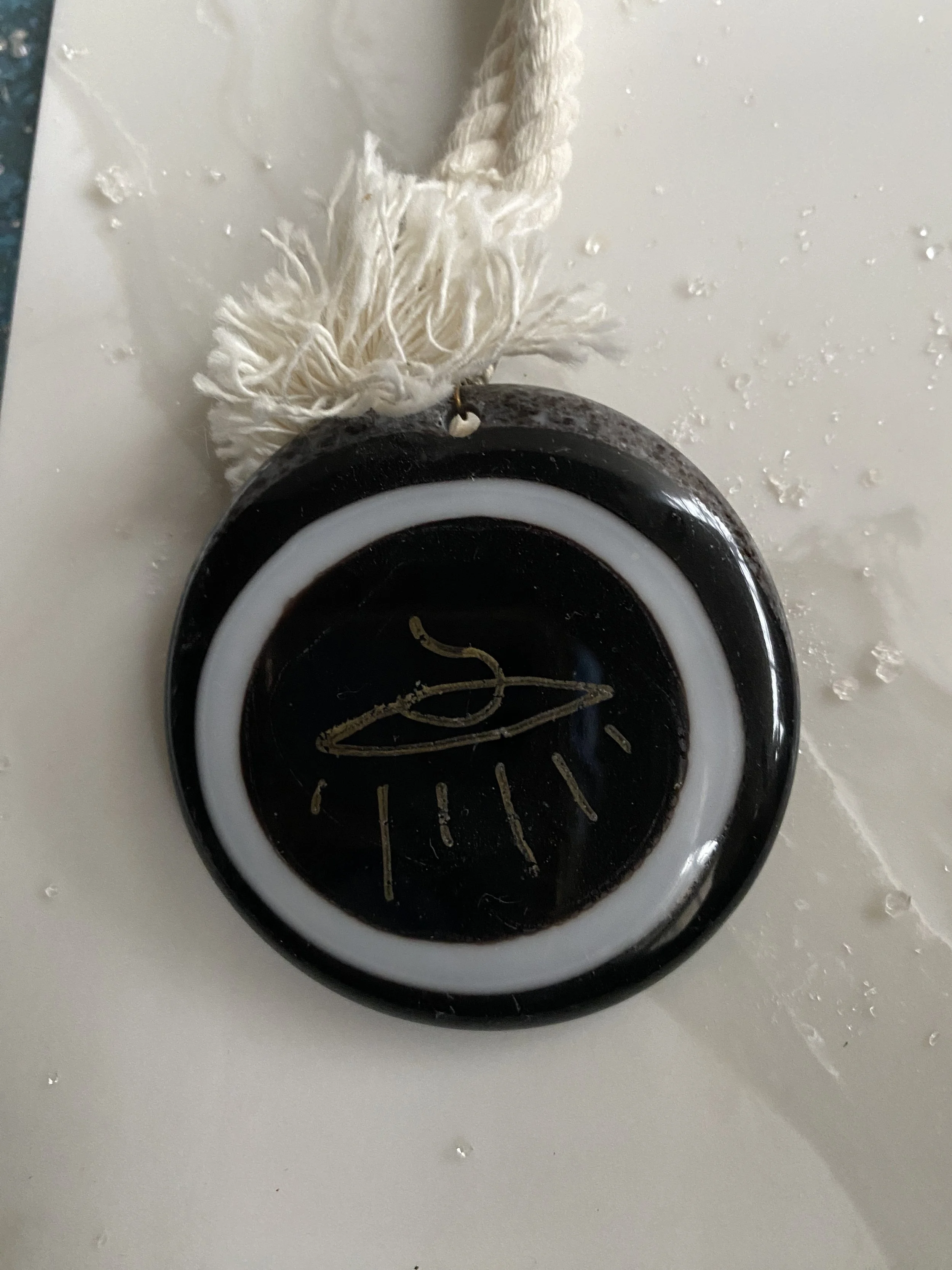 Handmade glass evil eye Mati Greek energetic protection amulet handmade by Depy Zepo in Chicago. One of a kind, unique, catches light beautifully - hang on your walls, in your windows, anywhere you need a boost of good luck and charm. Sky’s the limit babes, this handmade glass object is meant to bring you peace of mind and clarity of conviction. May it bring you and yours good health & wellness and energetic protection!