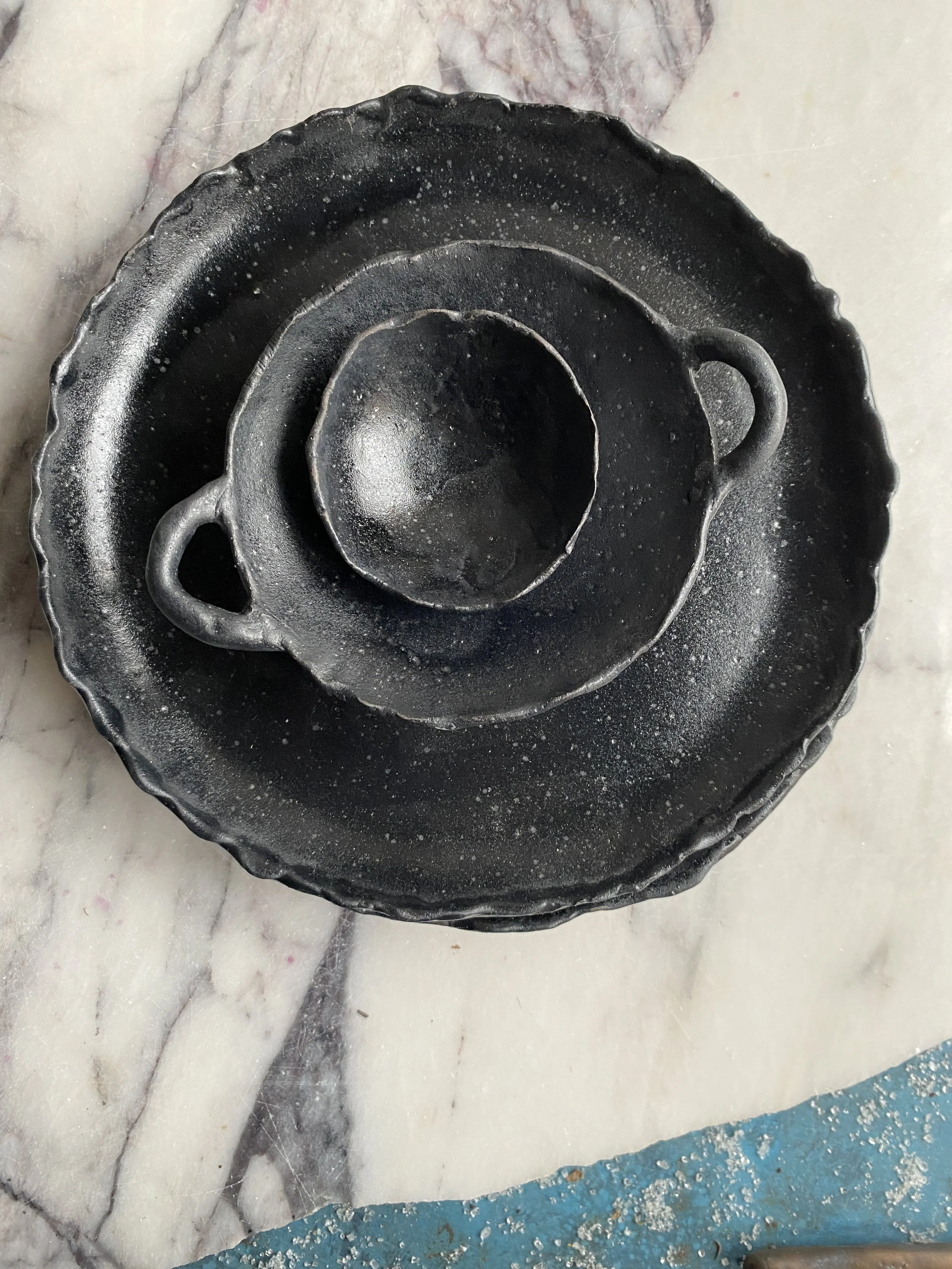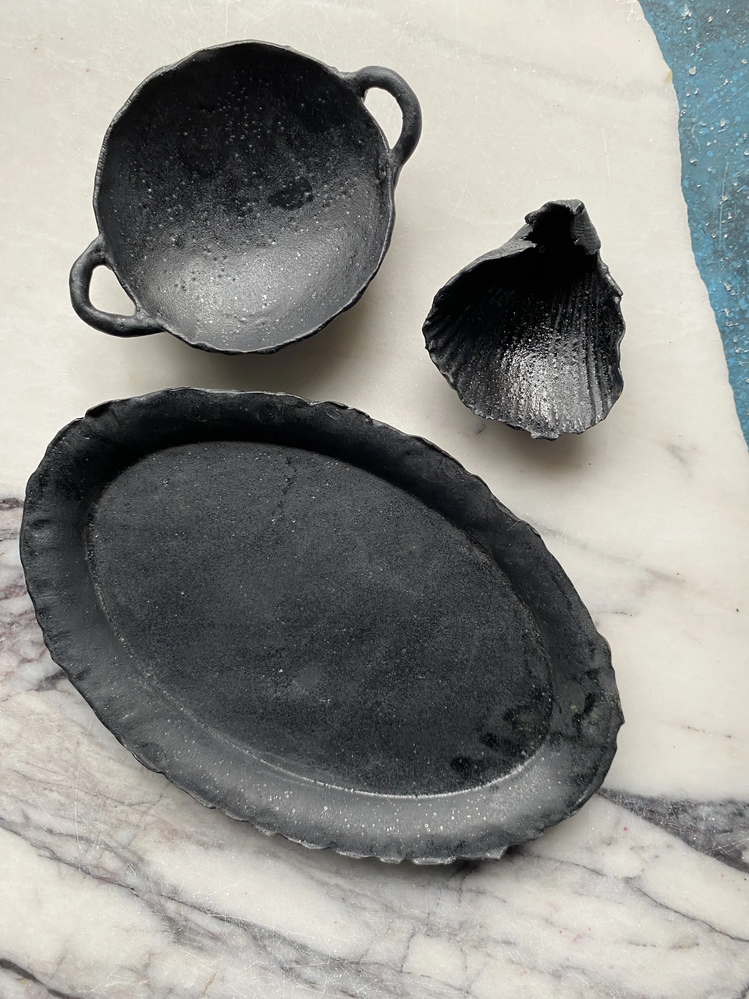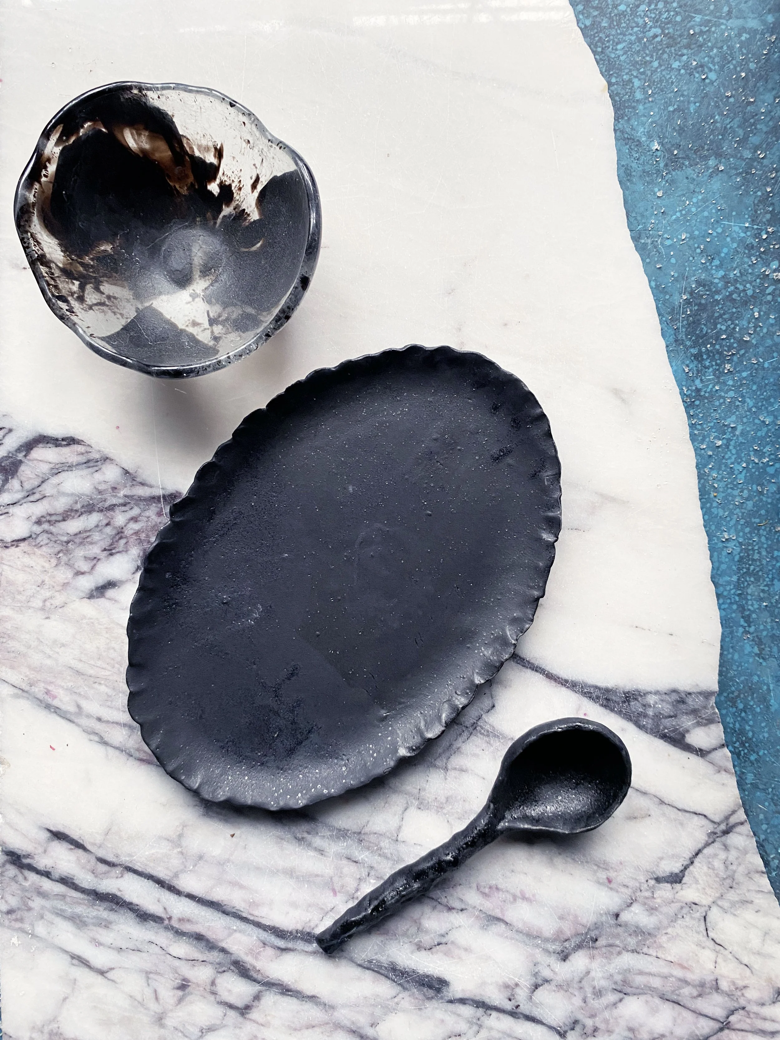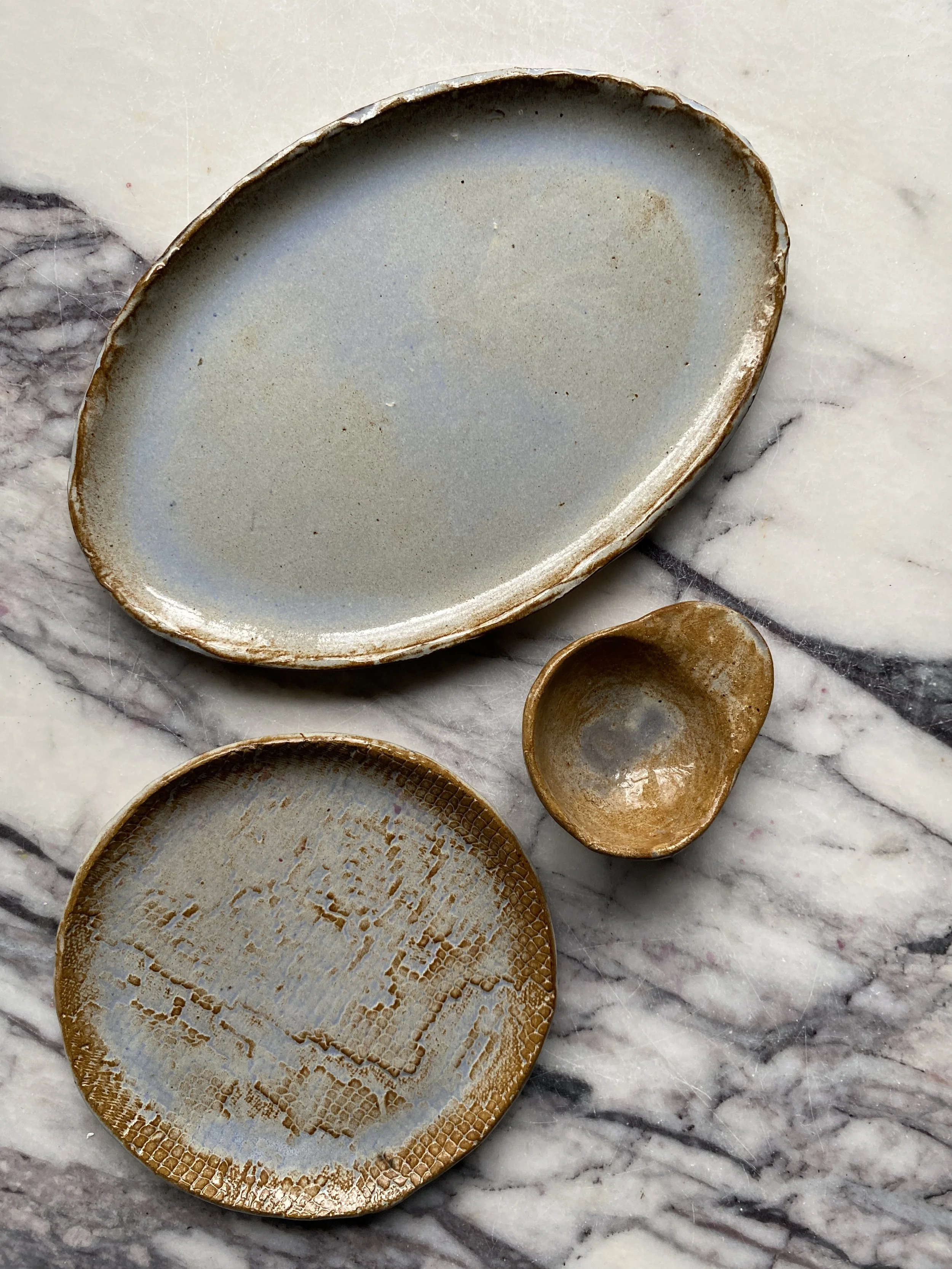Named for the iconic Oracle of Delphi herself, Pythia theee high priestess of Anicent Greece who would deliver prophecies and was considered one of the most powerful women in the ancient world. I made these dishes in her honor and to bring her spirit of enigmatic power to our homes and meals. The surface texture also reminds me of the moon, which I’m never mad about.