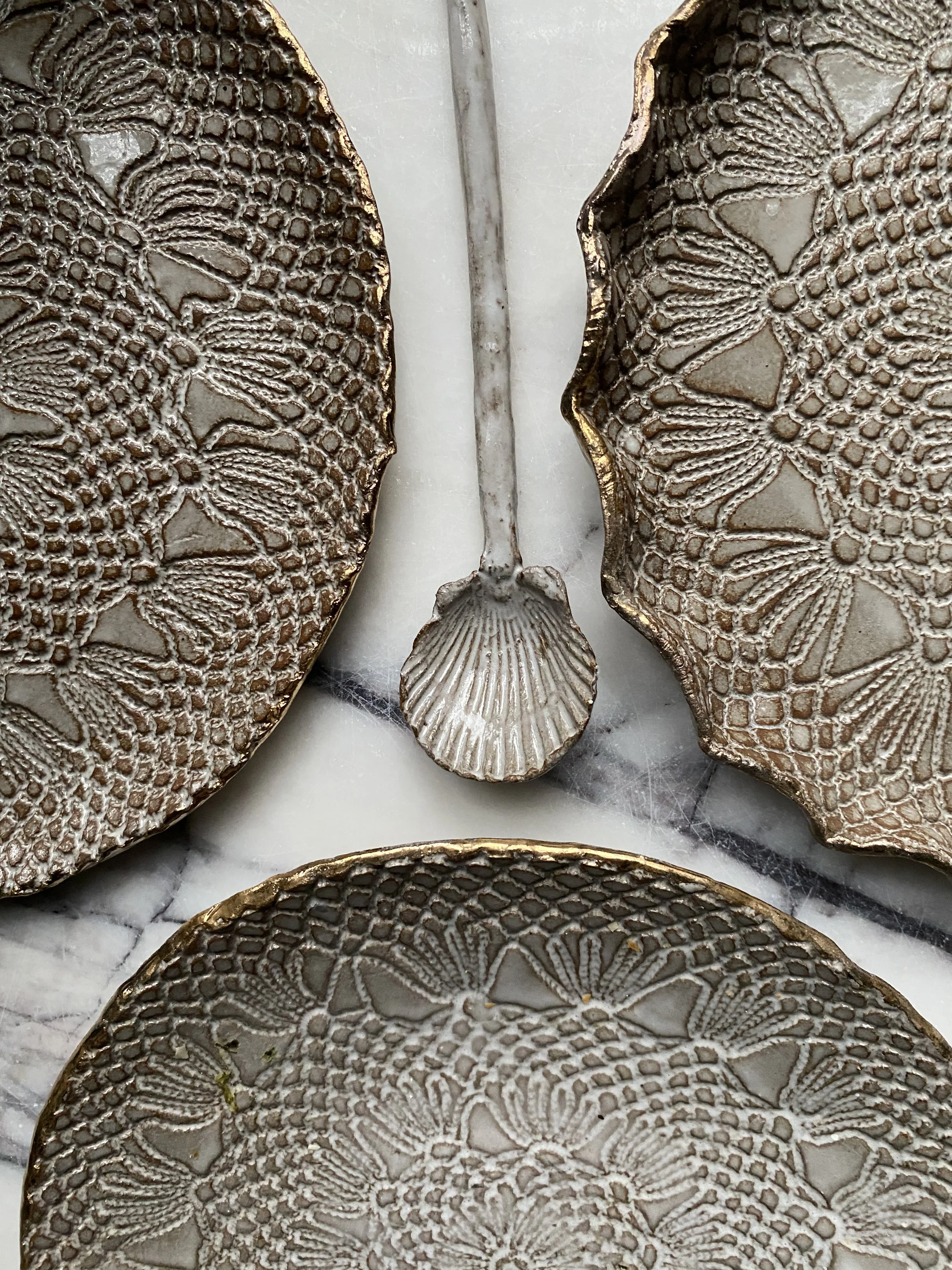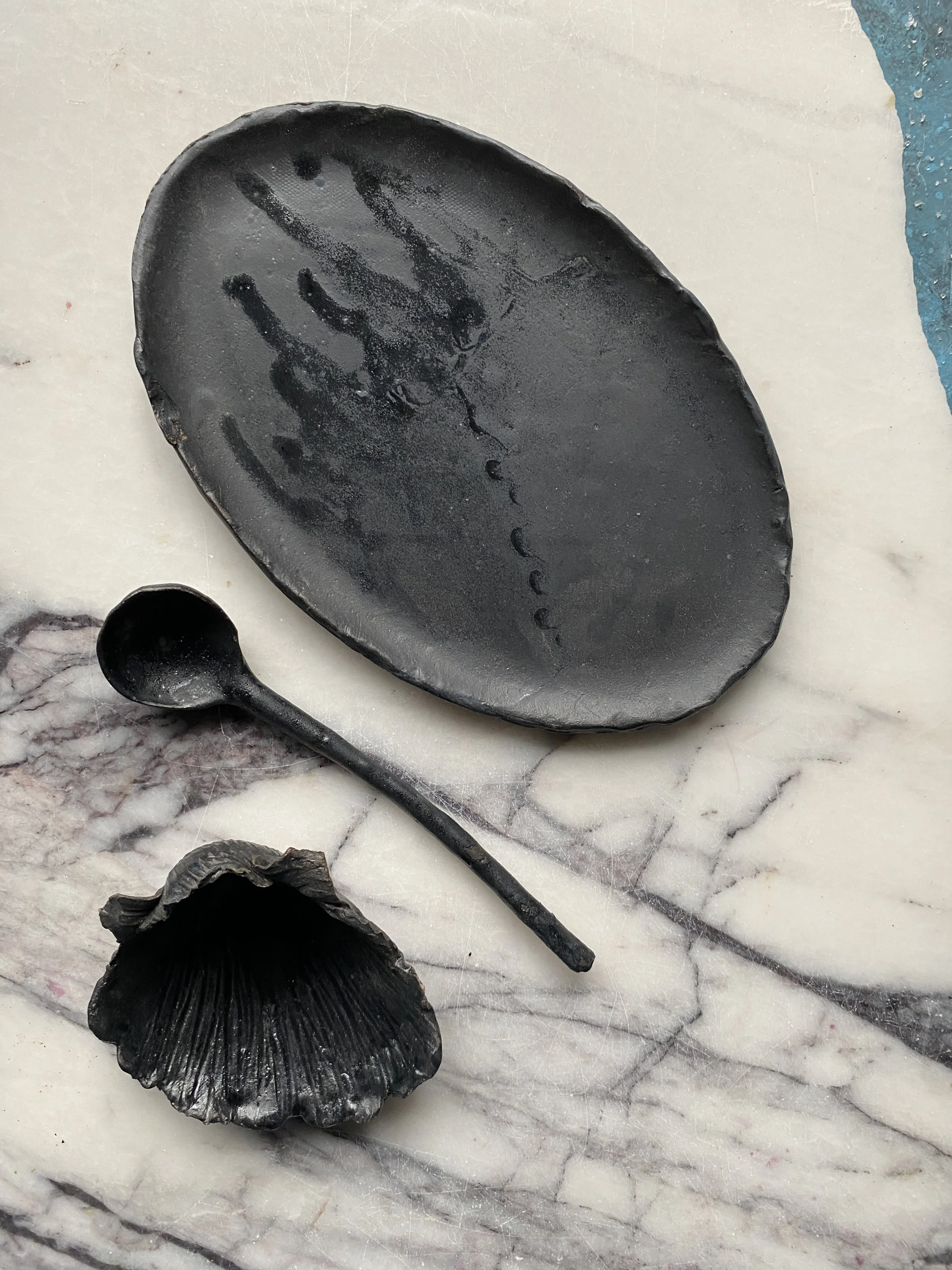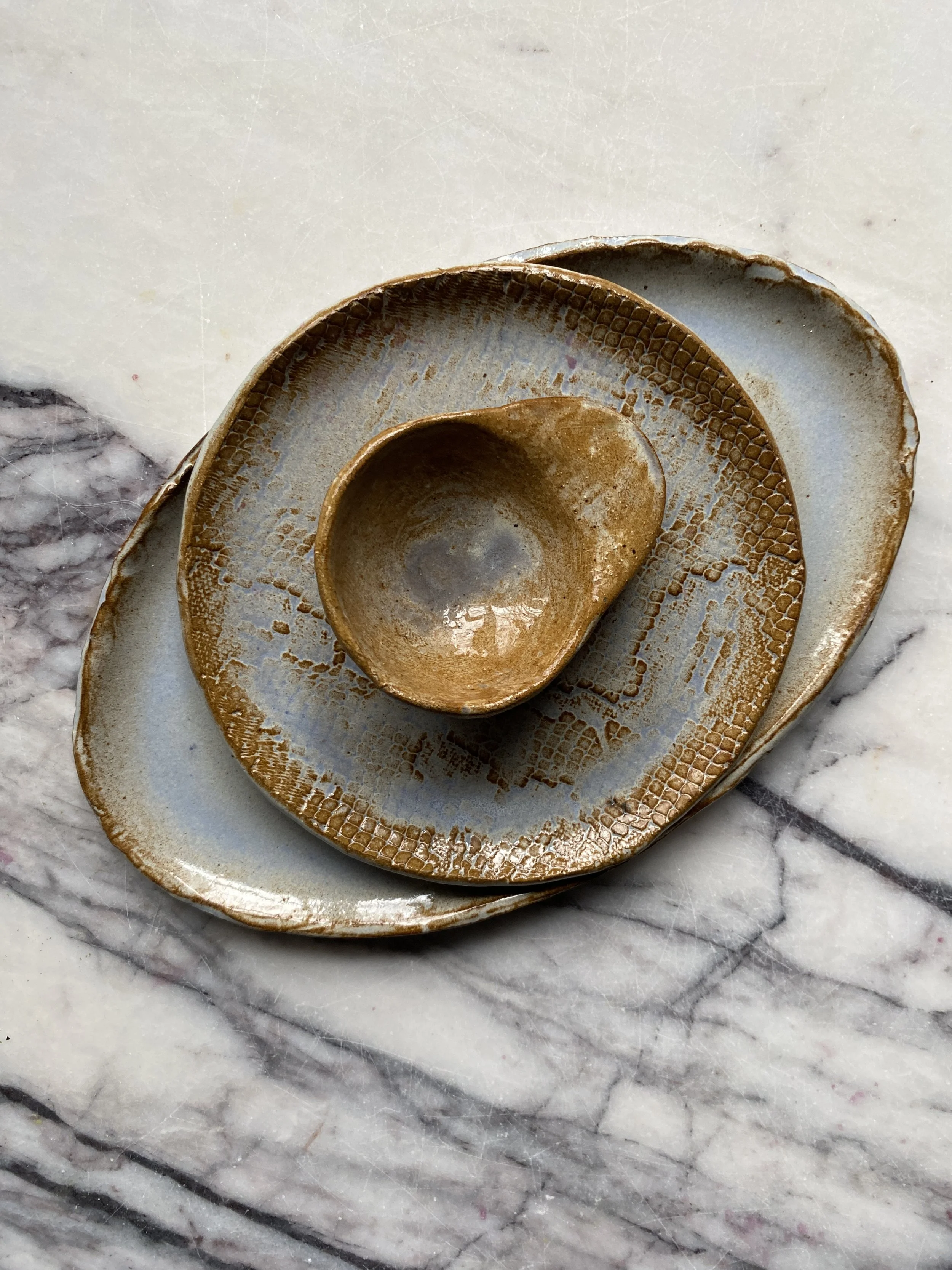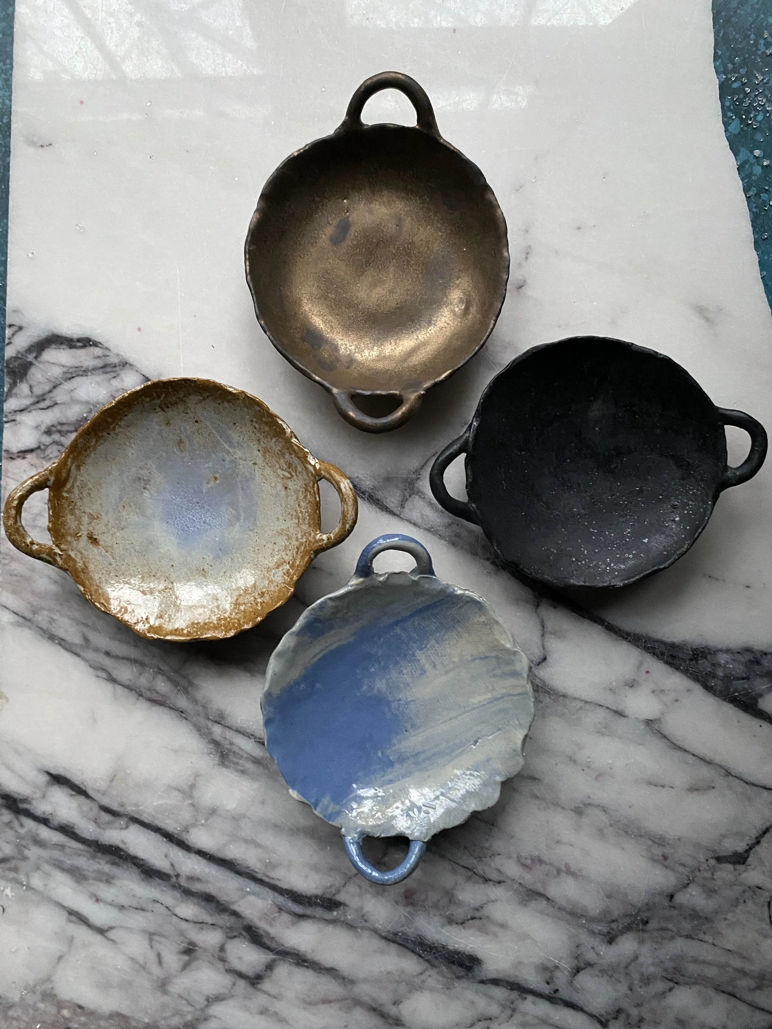 Named for the iconic Oracle of Delphi herself, Pythia theee high priestess of Anicent Greece who would deliver prophecies and was considered one of the most powerful women in the ancient world. I made these dishes in her honor and to bring her spirit of enigmatic power to our homes and meals. The surface texture also reminds me of the moon, which I’m never mad about.