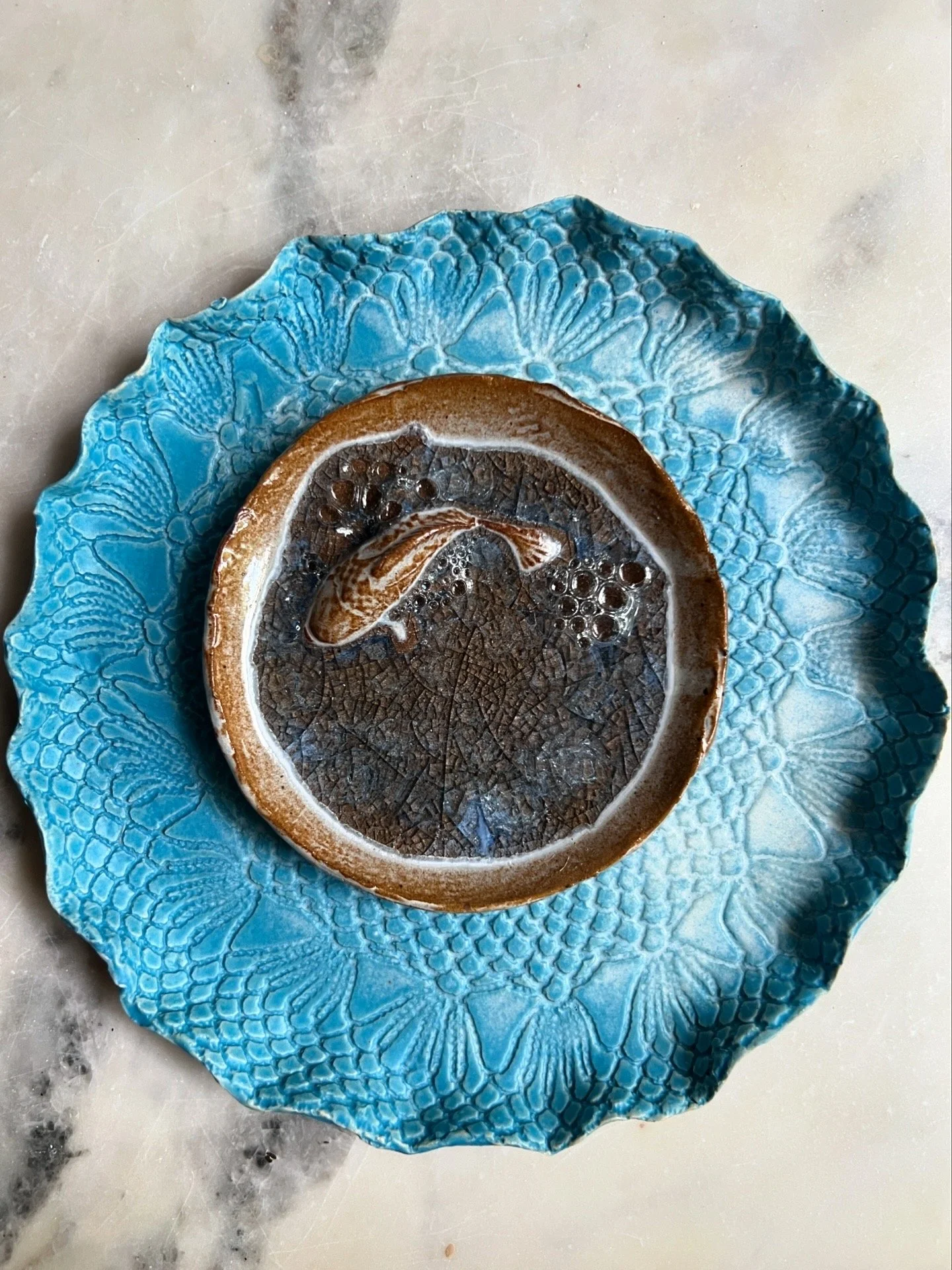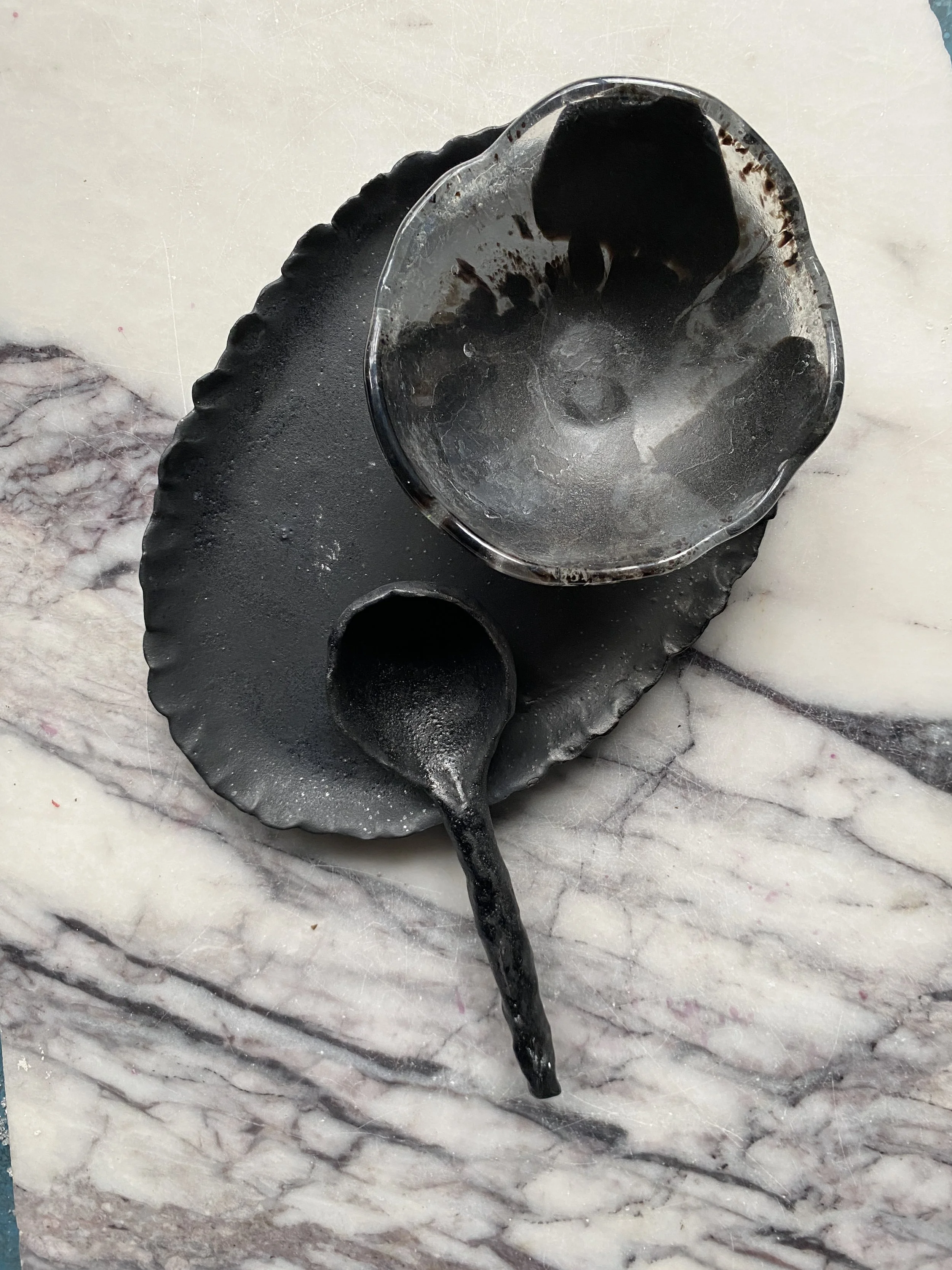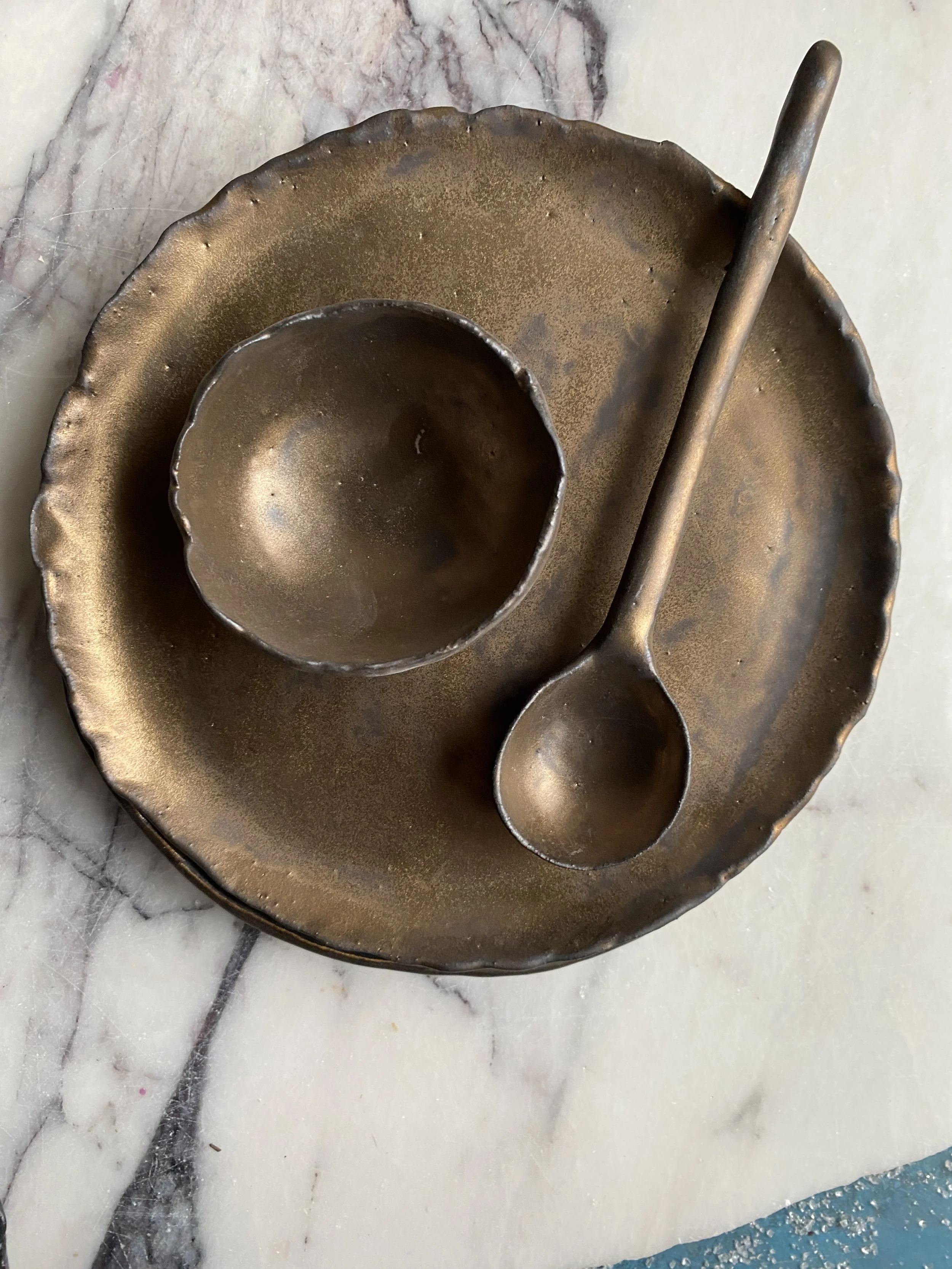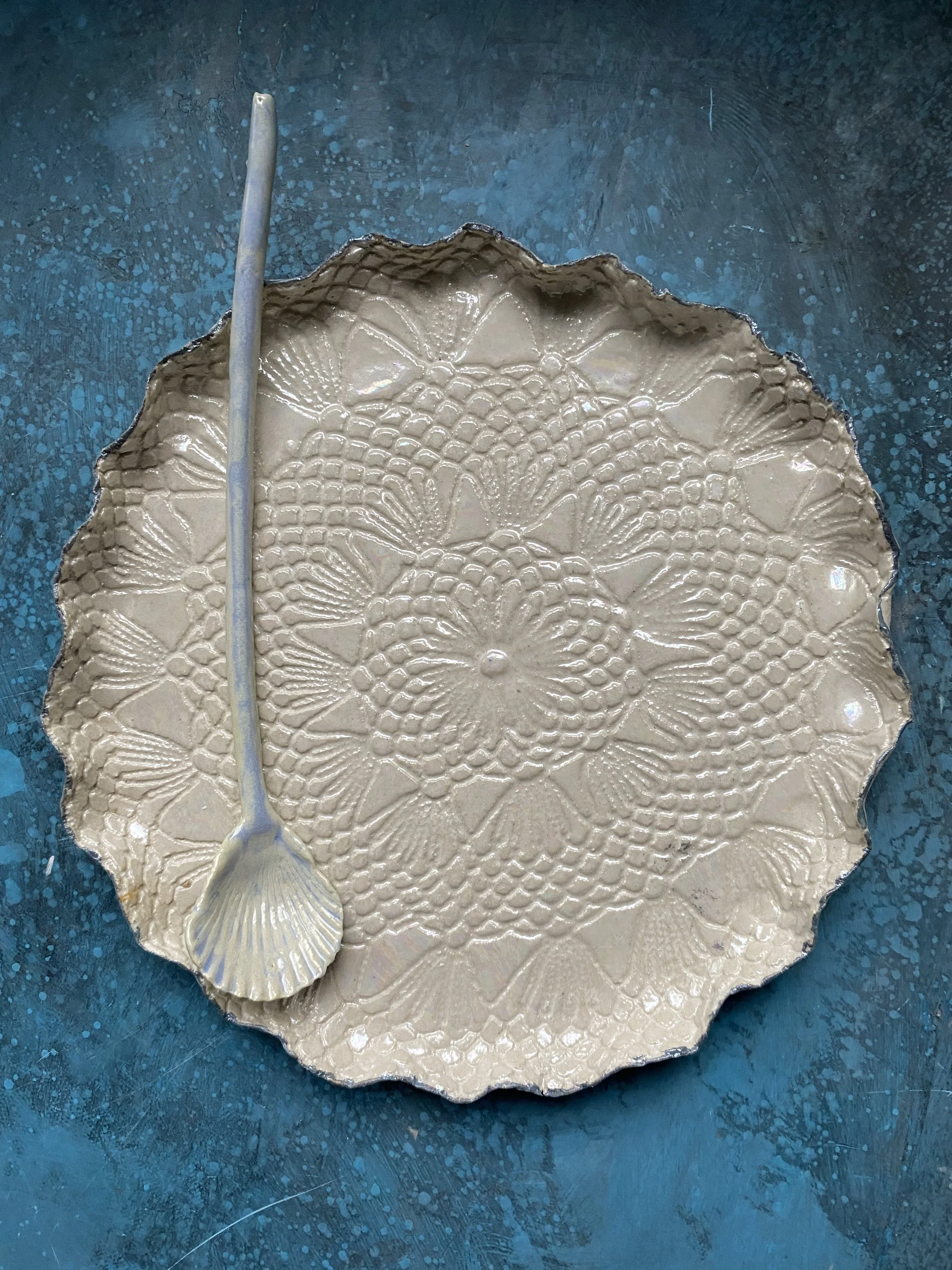 Named for the iconic Oracle of Delphi herself, Pythia theee high priestess of Anicent Greece who would deliver prophecies and was considered one of the most powerful women in the ancient world. I made these dishes in her honor and to bring her spirit of enigmatic power to our homes and meals. The surface texture also reminds me of the moon, which I’m never mad about.