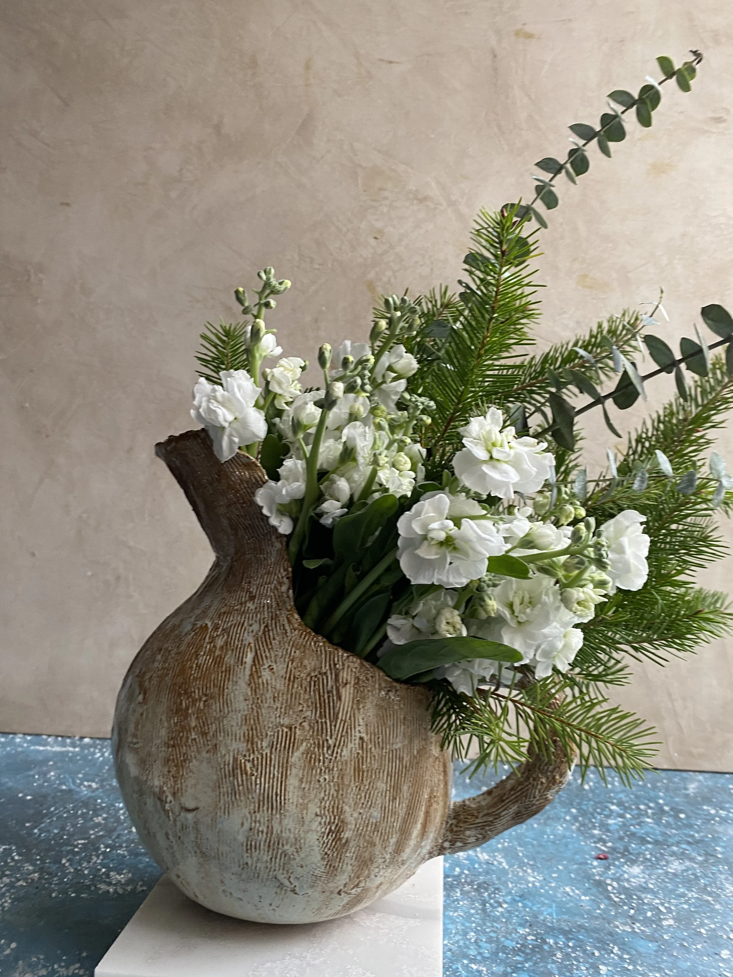 These vases are meant to look as though you pulled them from a shipwreck, from the depths of the sea. They are all water tight, ready for your floral bouquets, or to pour wine from at your next luxe dinner party.