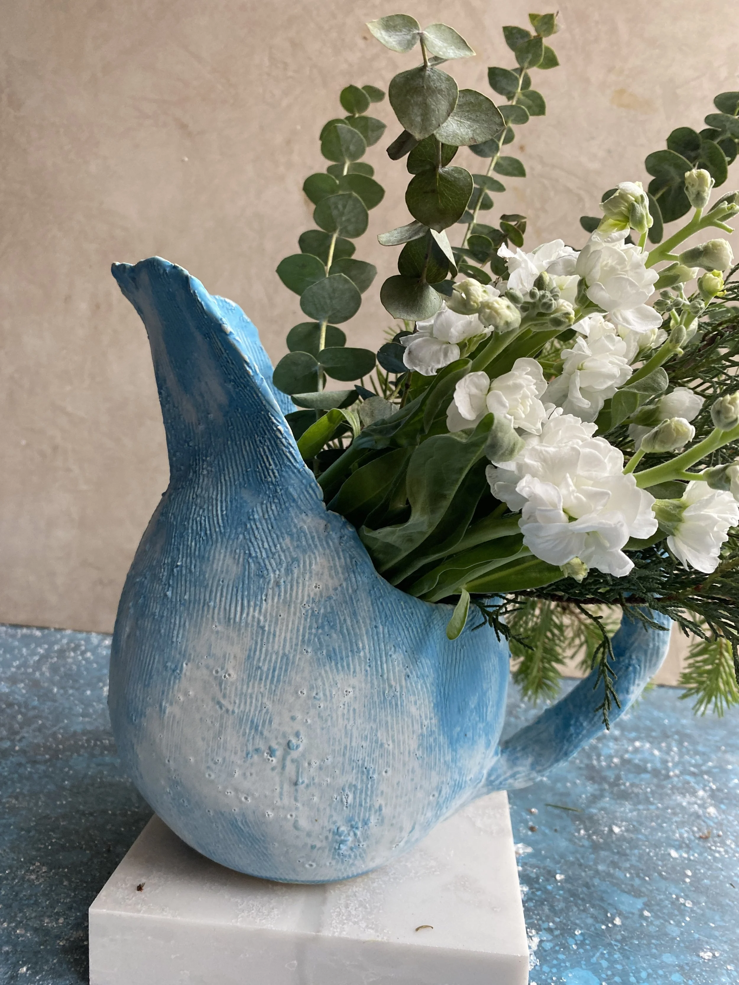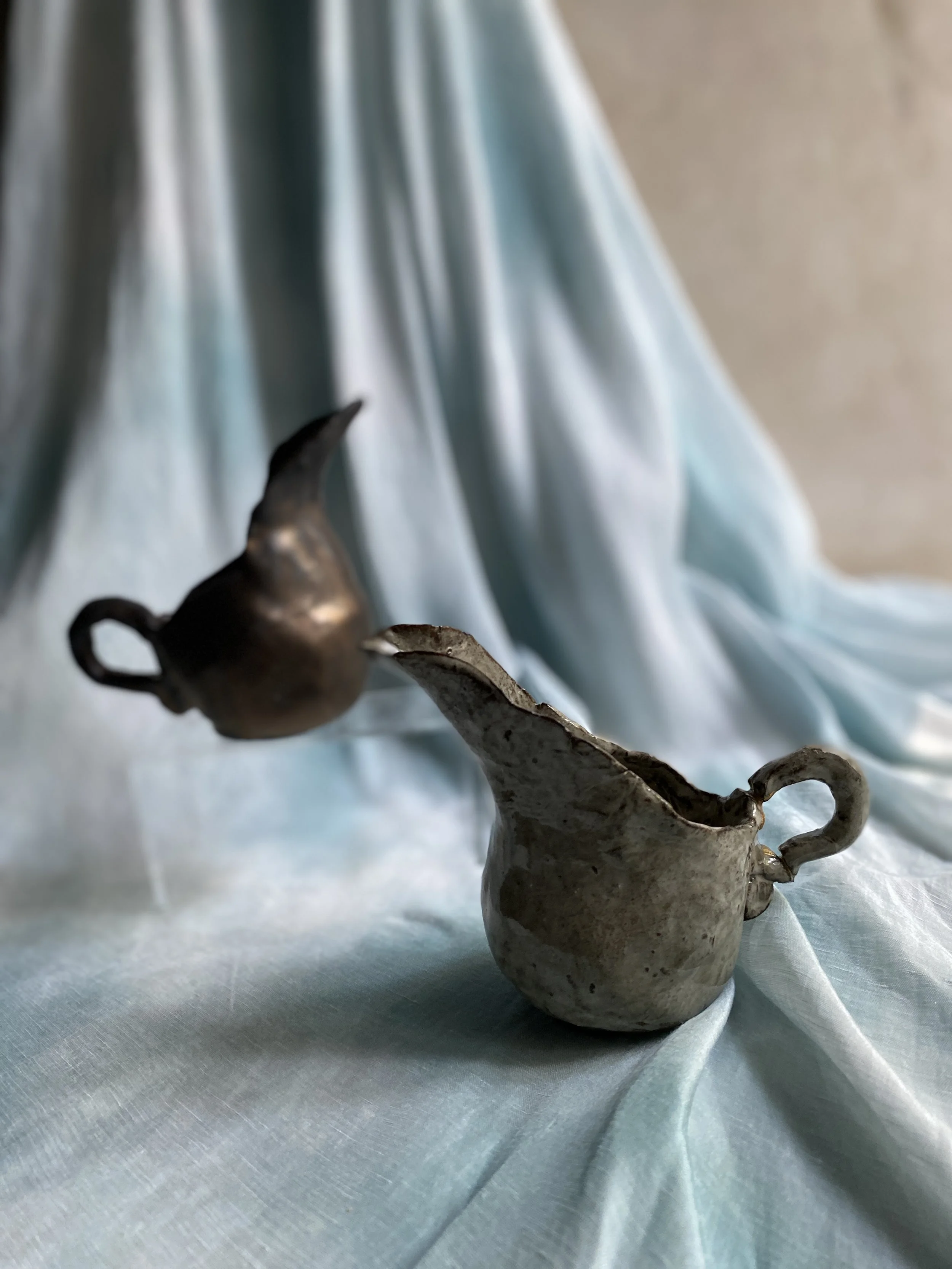 These vases are meant to look as though you pulled them from a shipwreck, from the depths of the sea. They are all water tight, ready for your floral bouquets, or to pour wine from at your next luxe dinner party.